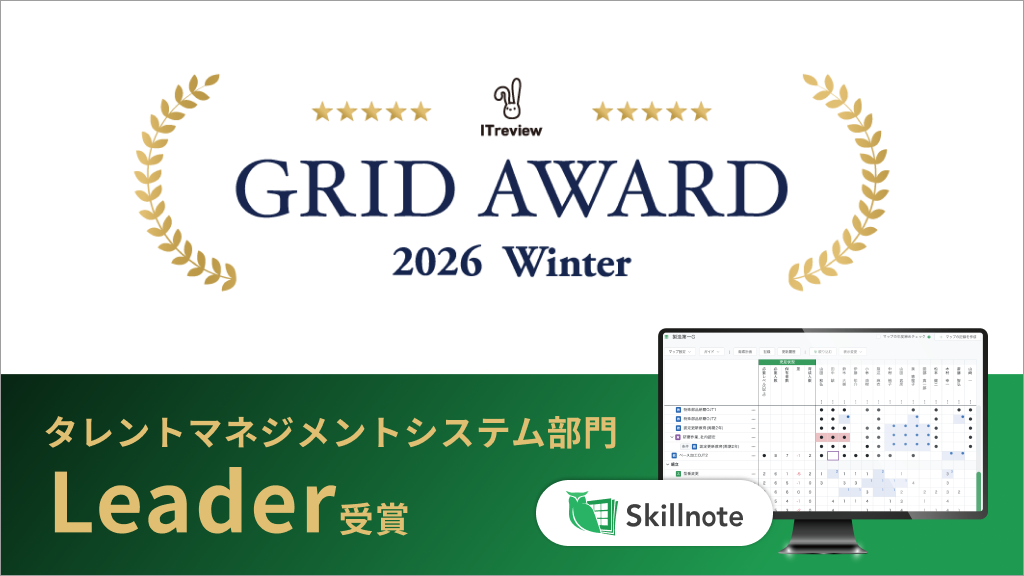 「Skillnote スキルマネジメントシステム」が「ITreview Grid Award 2026 Winter」のタレントマネジメントシステム部門で最高位「Leader」を受賞