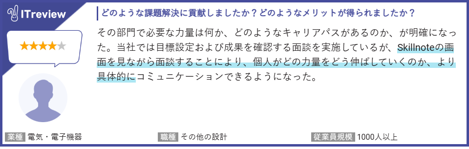■「Skillnote スキルマネジメントシステム」のレビューページはこちらhttps://www.itreview.jp/products/skillnote/reviews